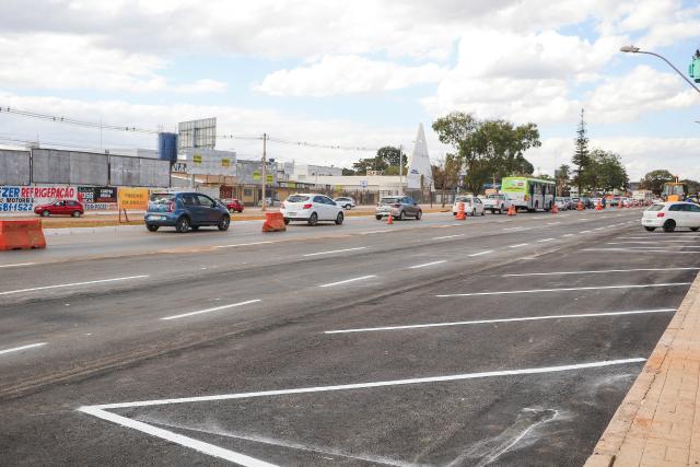 Já em outro trecho da avenida, que abrange regiões como QNG, CNG e QND, a obra precisou ser reorganizada após a rescisão do contrato com a empresa responsável. O próprio GDF assumiu os serviços e concluiu a pavimentação em 18 dias, liberando rapidamente o trânsito em uma área estratégica.