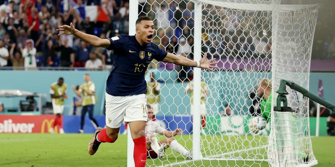 Atual campeã do mundo, a França é a primeira seleção a confirmar matematicamente a passagem para as oitavas de final da Copa do Catar. Os Le Bleus venceram a Dinamarca por 2 a1 pelo grupo D. Autor dos dois gols da França Kylian Mbappé se tornou o segundo maior artilheiro do país em Copas do Mundo, com sete tentos em nove jogos disputados. O camisa 10 do Paris Saint-Germain (PSG) superou Thierry Henry e está atrás apenas de Just Fontaine, que marcou 13 vezes no Mundial da Suécia , em 1958. Na artilharia geral francesa, o craque de 23 anos igualou-se a Zidane com 31 gols.